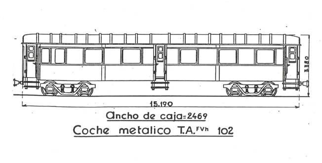 A finales de 1940 estaban en servicio 109 coches , sin recurrir a talleres ajenos a la compañía. A pesar de ello y para cubrir las necesidades de tráfico se recurrió a encargar a la Compañía Auxiliar de Ferrocarriles, de Beasain, 7 coches de tercera, tres terceras-furgones, todos metálicos.Al propio tiempo y desde 1943 , se acometió la sustitución de las cajas de coches matálicos por cajas de madera, en los talleres de la compañía, representando el 24 % de su parque en 1929. En una primera etapa se proyectó reconstruir 4 coches de 3ª clase,2 de 1º clase y 4 de trecera-furgón.